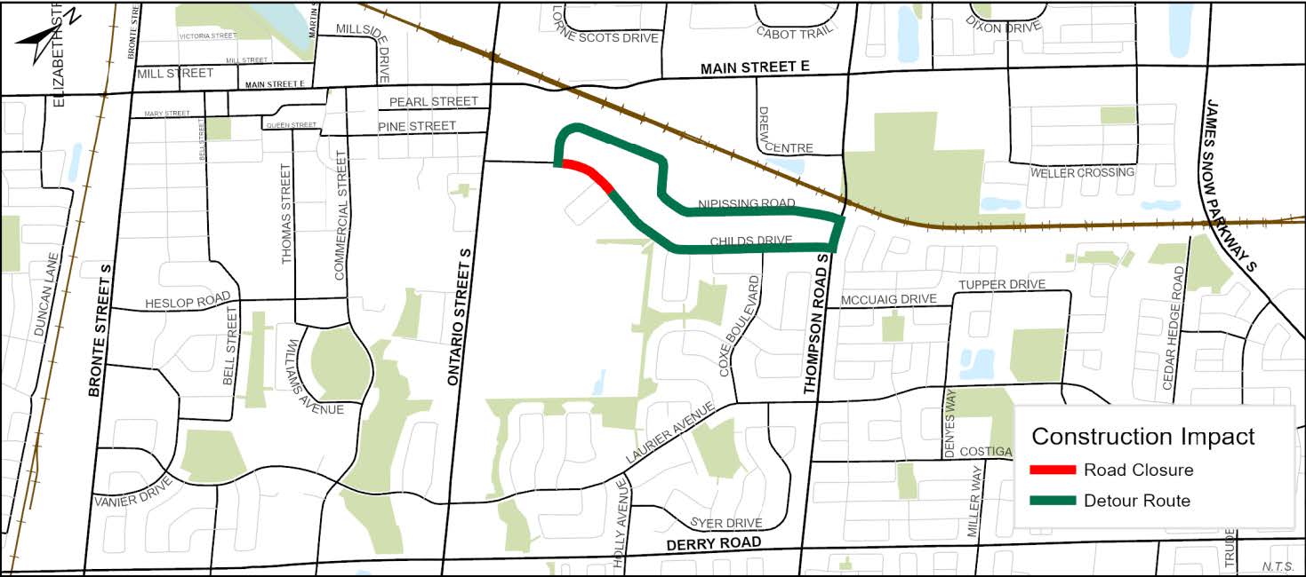 Childs Drive between Nipissing Road and the East leg of Satok Crescent.