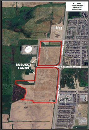 In accordance with the provisions of the Planning Act, this is to advise that a statutory public meeting has been scheduled by the Town of Milton’s Development Services Department for an official plan amendment and zoning by-law amendment for lands described as the west side of Tremaine Road, south of Dymott Avenue extension, and intersected by Louis St. Laurent Avenue. The subject lands are also undergoing a Draft Plan of Subdivision application concurrently (Town File No. 24T-25002/M). The subject property is located in Ward 4 and has an area of approximately 38.71 hectares. The property is legally described as Part Lot 7, 8, and 9, Concession 7 NS in the Town of Milton and municipally identified as 215 Pan Am Blvd., 6270 and 6400 Tremaine Rd.